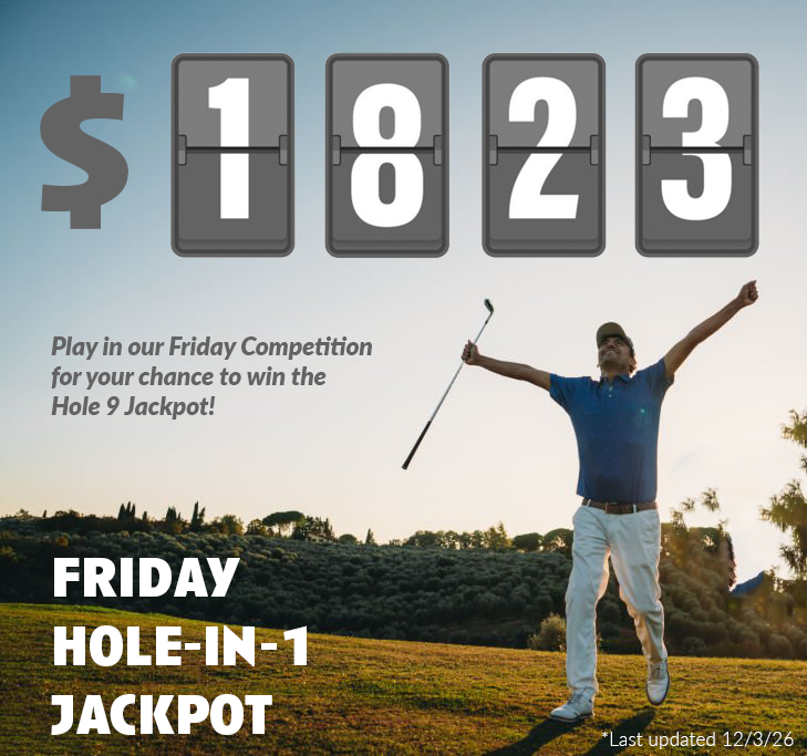 Simply book in and play our Friday Golf competition for your chance at the hole-in-1 jackpot! Amount updated every week.